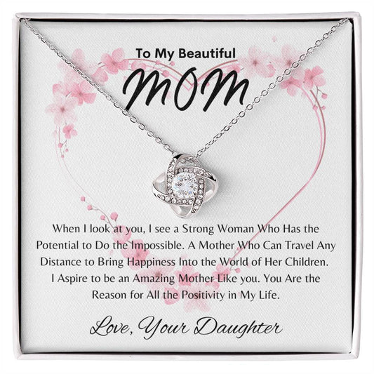 Beautiful Mom - Positivity in My Life - From Daughter - Love Knot Necklace